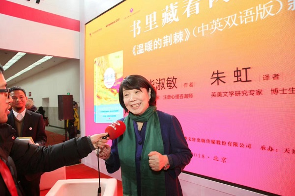2018年1月12日上午,作家毕淑敏和翻译家朱虹携首部中英双语版新书《温暖的荆棘》亮相2018年北京图书订货会,与现场读者分享了创作故事以及人生经验和感悟。本书已由天地出版社出版。